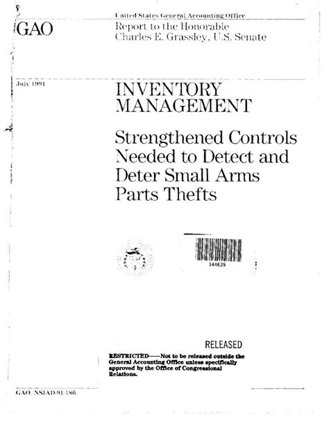 Read Inventory Management: Strengthened Controls Needed to Detect and Deter Small Arms Parts Thefts rtf